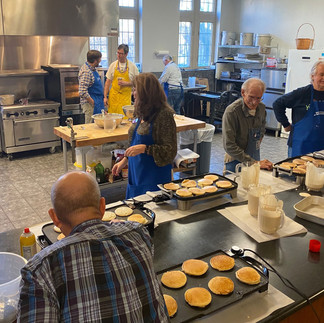 After a year's hiatus, the Shrove Tuesday Pancake Dinner returned and 125 Trinitarians were ready to get out and celebrate the last feast before Lent. And celebrate, they did consuming 15 pounds of bacon and 200 sausage links, not to mention the pancakes! Thank you to the Trinity men who cooked the dinner for us!